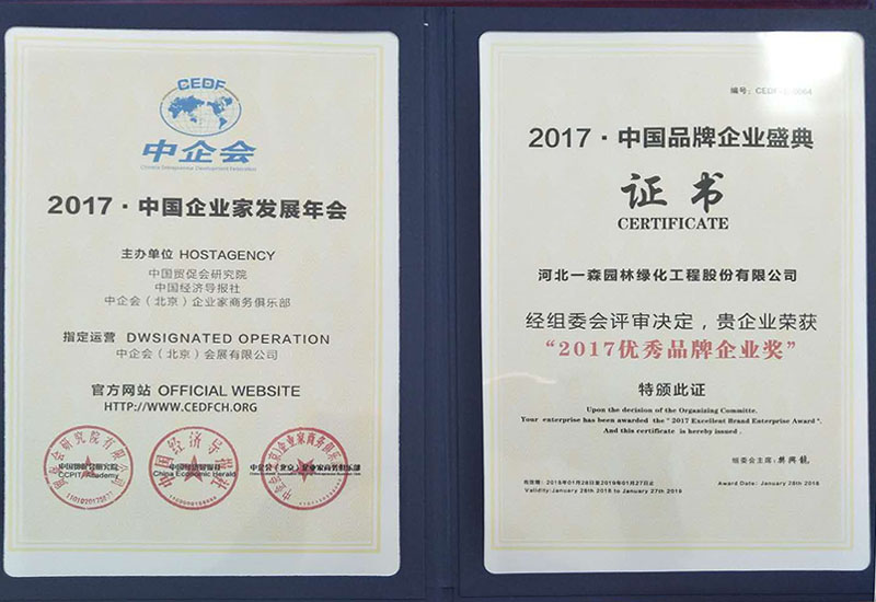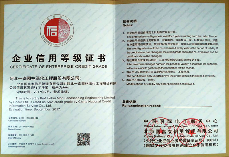 河北省城市園林綠化行業(yè)4A級(jí)誠信企業(yè)